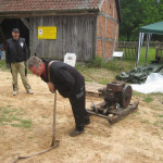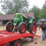 Am Donnerstag, 31.05.2012, haben wir unsere Maschinen und Geräte in einen LKW verladen. Mitgenommen wurden unser Schmaldrescher, schon über 100 Jahre alt, sowie die Häckselmaschine, die Getreidemühle, die Staubmühle und ein kleiner Deutz-Standmotor. Auch die Getreidegarben, die wir im letzten Jahr gemäht hatten,wurden natürlich aufgeladen.